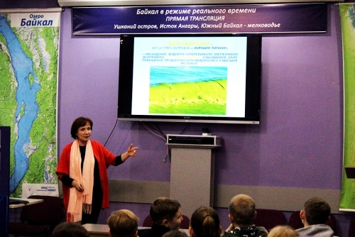 Заслуженный эколог Иркутской области зав. сектором музееведения к.б.н. Е.Н. Кузеванова провела занятия со школьниками по профессиональной ориентации, рассказала о современных экологических проблемах на Байкале и потребностях байкальской экономики в профессиях, связанных с экологией и развитием туризма на Байкале.