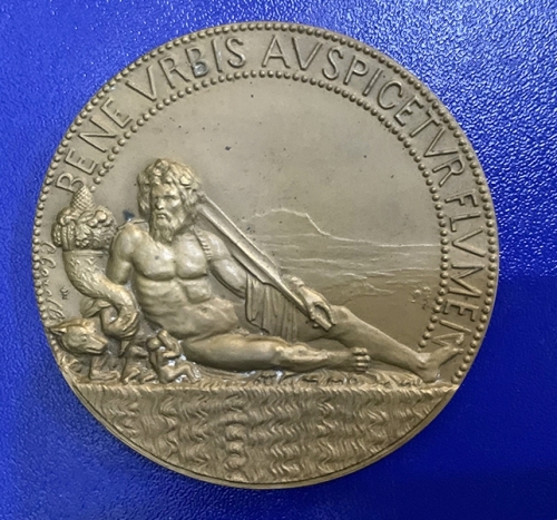Вверху по окружности – надпись на латинском языке «Bene Vrbis avspicetVr flVmen», что можно перевести как «Хороший город благоприятствует реке». Курсивом по ободку медали обозначена фамилия медальера – «C . Corelli».