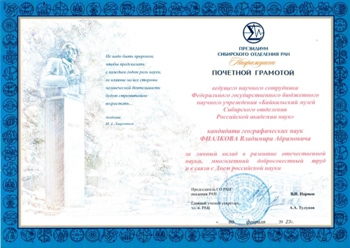 8 февраля 2023 г. на торжественном заседании Координационного научного совета при Губернаторе Иркутской области, посвящённом Дню российской науки, были отмечены высокие научные достижения коллектива музея.