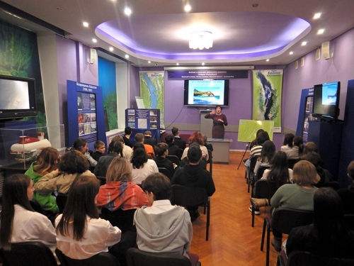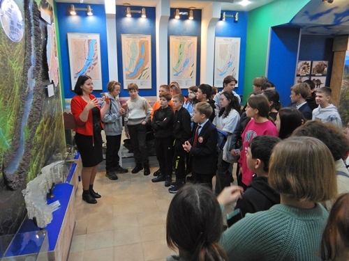 8 ноября в Байкальском музее для школьников в рамках акции «Наука рядом» и в честь Всемирного дня науки проведена экскурсия по экспозициям «Биологическое разнообразие Байкала», «Особо охраняемые природные территории», «История освоения и исследований Байкала». На аквариумной экспозиции ребята ознакомились с живыми обитателями озера – уникальными байкальскими рыбами – омулем, осетром, желтокрылкой, длиннокрылкой и другими эндемиками. Большое впечатление на школьников произвели две байкальские нерпы, обитающие в самом крупном аквариуме музея.