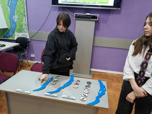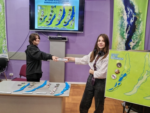 Помимо экскурсии со школьниками были проведены практические занятия по темам «История формирования озера Байкал» и «Живой мир Байкала под микроскопом». Школьникам впервые представили обучающую магнитную игру, благодаря которой они ознакомились с геологической историей формирования Байкала, от мелких теплых озер, которые возникли на месте великого озера 70 млн лет назад, и на фоне изменений климата и ландшафта углублялись и увеличивались до современных размеров Байкала. С помощью обучающей игры ребята познакомились, благодаря находкам сибирских ученых-палеонтологов, с удивительными древними животными, населявшими берега Байкала в разные периоды его формирования – попугаями, древними черепахами и бегемотами, медведесобаками и гиенами, мамонтами и пещерными львами.